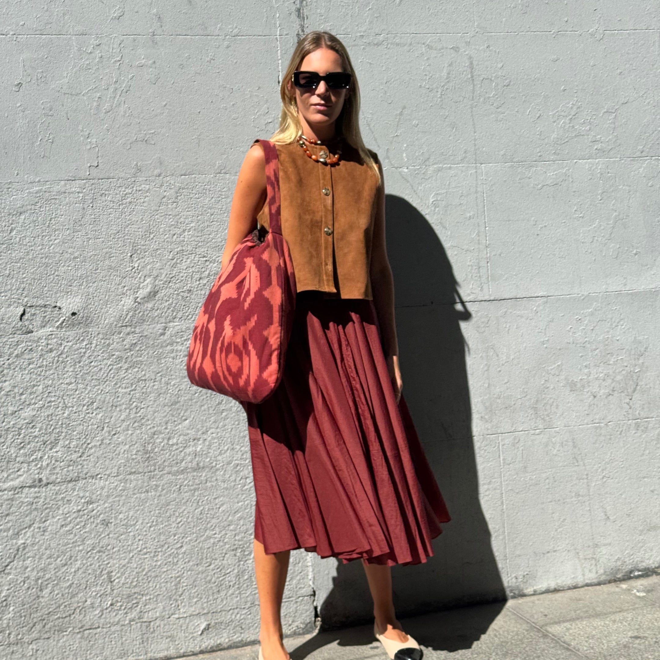 Como su nombre indica, el Éclat añade un destello de estilo a lo cotidiano. Confeccionado en algodón burdeos, es un shopper amplio, práctico y chic, perfecto para llevar tu ordenador y tus básicos diarios con un toque refinado. Incorpora además un bolsillo interior, ideal para mantener tus objetos más pequeños siempre a mano.