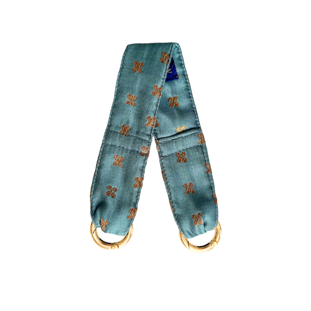 Un diseño que une tradición y estilo. Ciel está confeccionada en brocado Banarasi, un tejido artesanal conocido por su brillo delicado y detalles únicos. En tonos turquesa grisáceo con sutiles toques rosados, es la pieza perfecta para darle un toque chic y elegante a tu móvil mientras lo llevas siempre contigo.